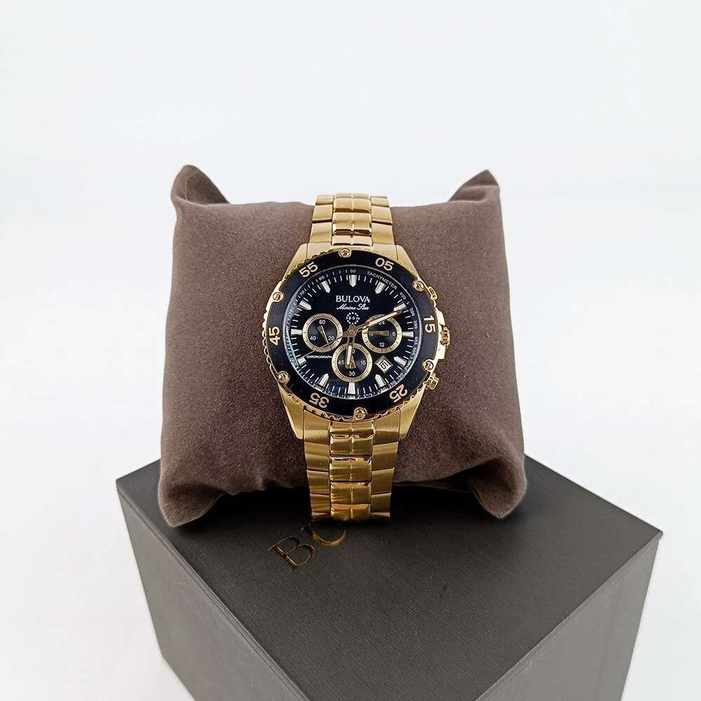Elevate your wrist game with the Bulova Marine Star New 98B406 Black Dial & Gold Steel Men’s Quartz Watch , a masterpiece that blends sophistication, precision, and durability. Designed for the modern man who values ​​both style and functionality, this timepiece is a perfect companion for any occasion—whether you’re heading to the office, attending a formal event, or enjoying a casual day out.